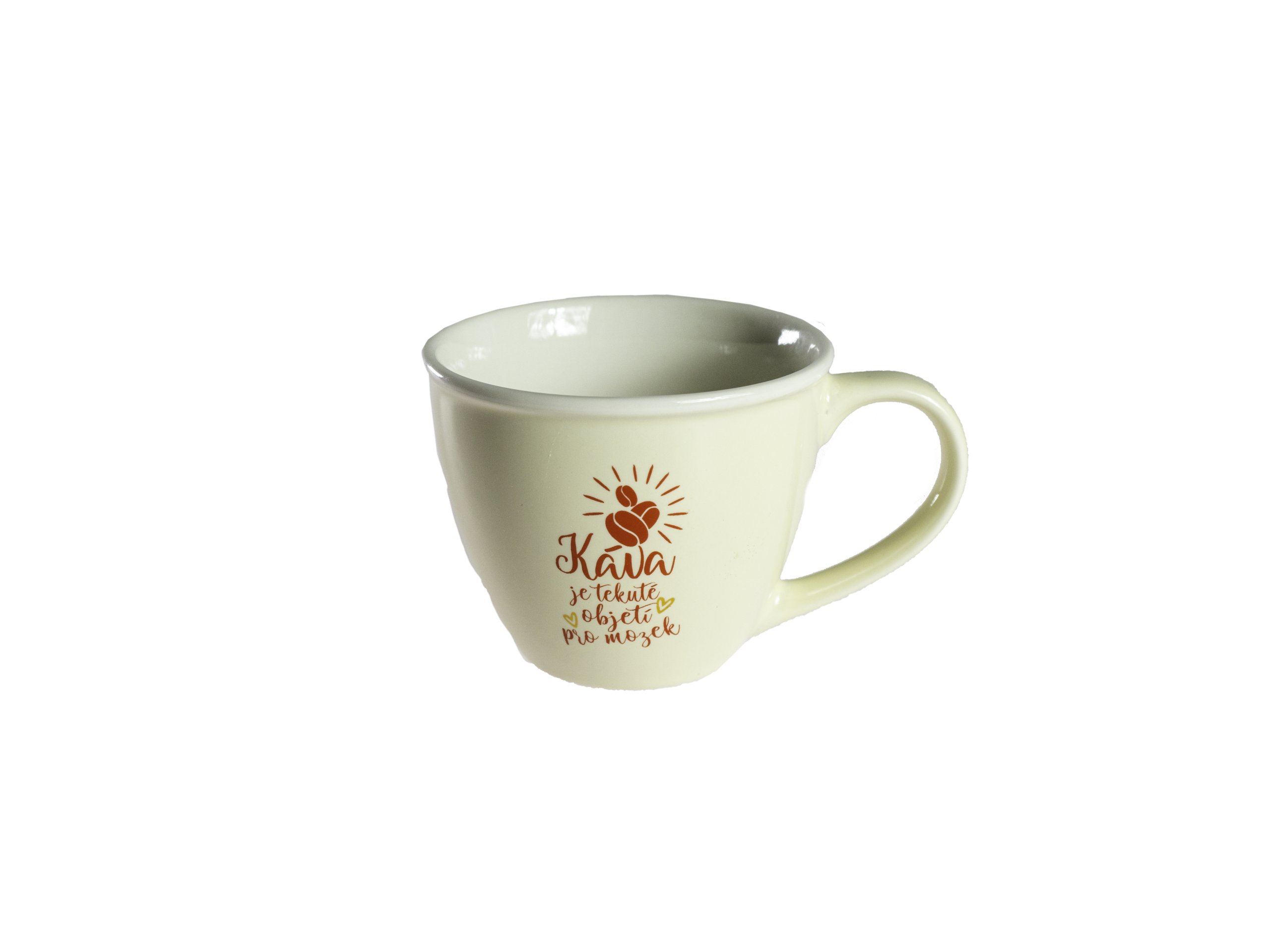 Hrnek na cappuccino 220 mlHrnek na cappuccino „Káva je tekuté objetí pro mozek“ – béžový 220 ml